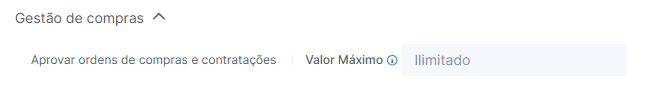 Para configurar se o usuário possui permissão de aprovar qualquer ordem de compra ou será limitado a um valor utilize o campo “Valor máximo” dentro da configuração de alçada.