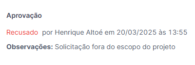Solicitações recusadas não poderão seguir para os próximos status no processo de compra.