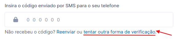 Com o SMS configurado, sempre que você for fazer login ou realizar alguma ação que exija o código de verificação, basta clicar em "Escolher outra forma verificação".