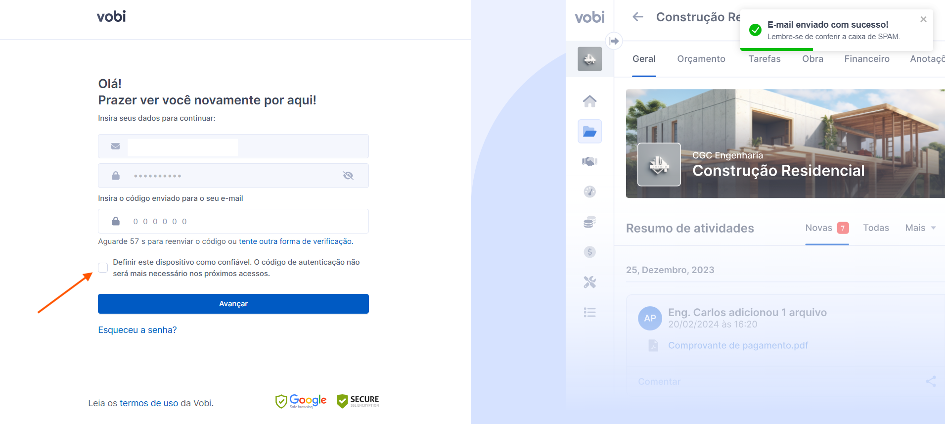 Essa configuração é mais uma possibilidade de personalização dos seus dispositivos, agilizando os acessos diários à Vobi e flexibilizando o recebimento dos códigos de validação.