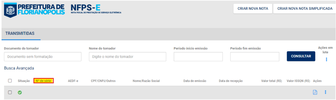 Consulte a última NFS-e emitida pelo portal da prefeitura e veja o número apresentado no campo “Nº de série”.