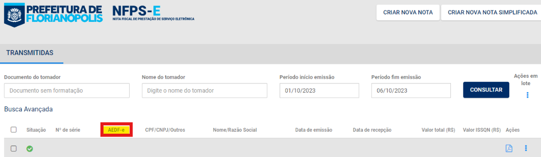 O número da AEDF-e pode ser consultado diretamente no portal da Prefeitura de Florianópolis. Basta acessar sua conta, consultar a última NFS-e emitida e terá o número no campo de “AEDF-e”.