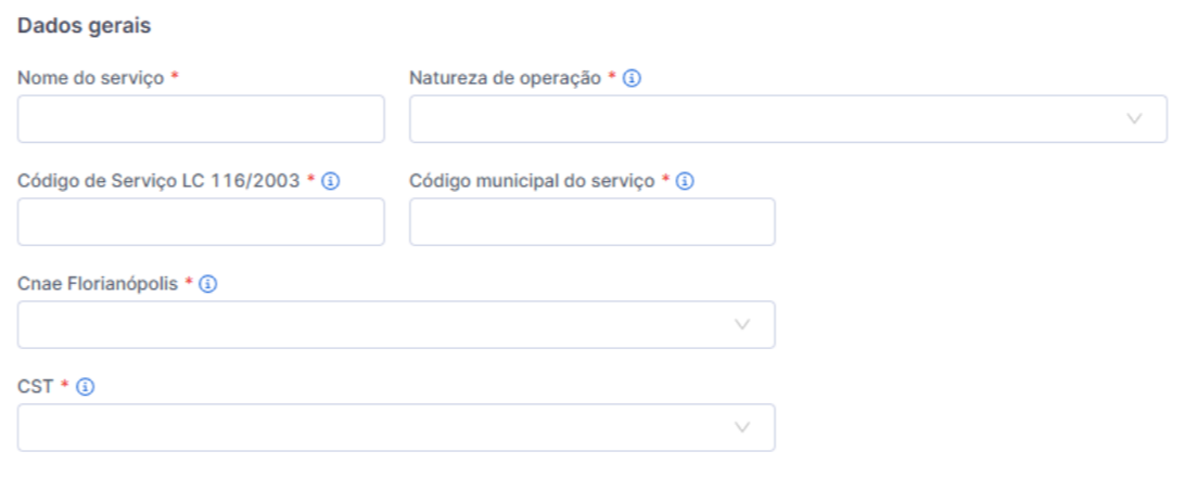 Para inserir os serviços prestados pela sua empresa, basta preencher as informações sobre Dados Gerais dos serviços nos seguintes campos: