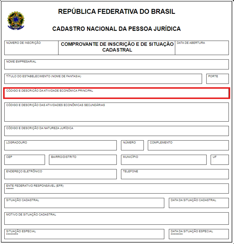 O CNAE estabelece quais operações a empresa pode realizar e a qual segmento econômico ela pertence. O código pode ser encontrado no cartão CNPJ a empresa.