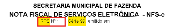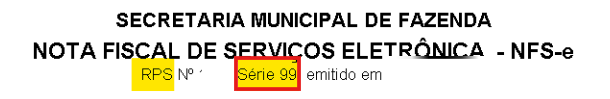 O Número de Série do RPS pode variar de acordo com cada município e se trata de um controle interno da prefeitura para identificar as NFS-e emitidas. Pode ser um número (como 1,2 ou 3), ou letras (como S, SN, NFS).