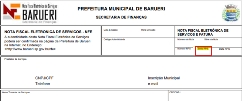 O Número de Série do RPS pode variar de acordo com cada município e se trata de um controle interno da prefeitura para identificar as NFS-e emitidas. Pode ser um número (como 1,2 ou 3), ou letras (como S, SN, NFS).
