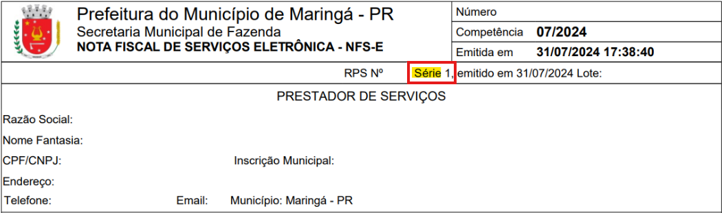 O Número de Série do RPS pode variar de acordo com cada município e se trata de um controle interno da prefeitura para identificar as NFS-e emitidas. Pode ser um número (como 1,2 ou 3), ou letras (como S, SN, NFS).