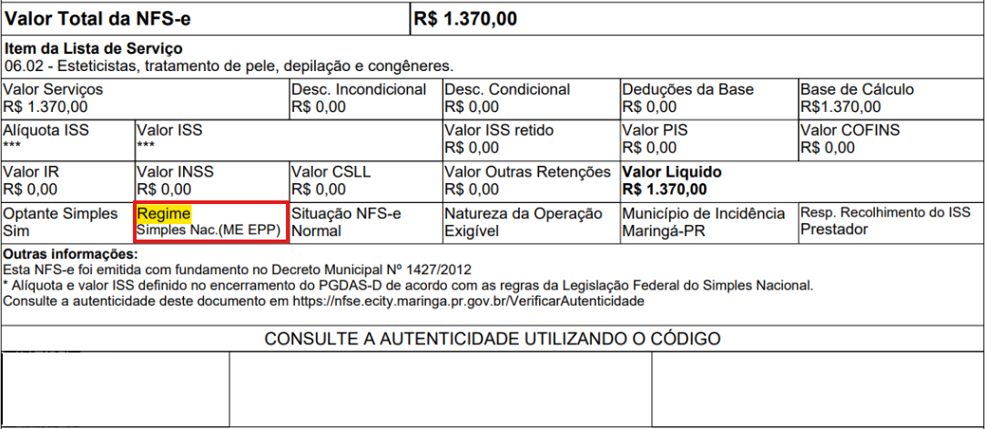 O Regime Especial de Tributação pode ser encontrado no PDF da última nota fiscal emitida, ou pelo portal da prefeitura de sua cidade. No portal prefeitura, clique em Consultas > Consulta de NF-e > Consultar > Imprimir.