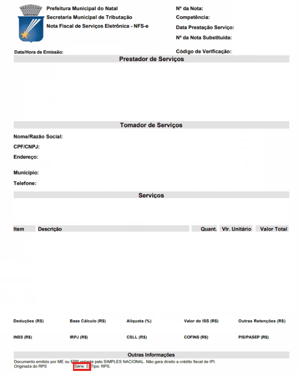 O Número de Série do RPS pode variar de acordo com cada município e se trata de um controle interno da prefeitura para identificar as NFS-e emitidas. Pode ser um número (como 1,2 ou 3), ou letras (como S, SN, NFS).