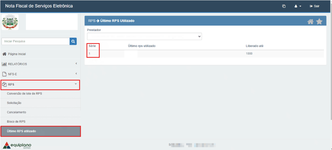 Você encontra o número de série no portal da prefeitura, após realizar o login em RPS > Último RPS Utilizado > Série.