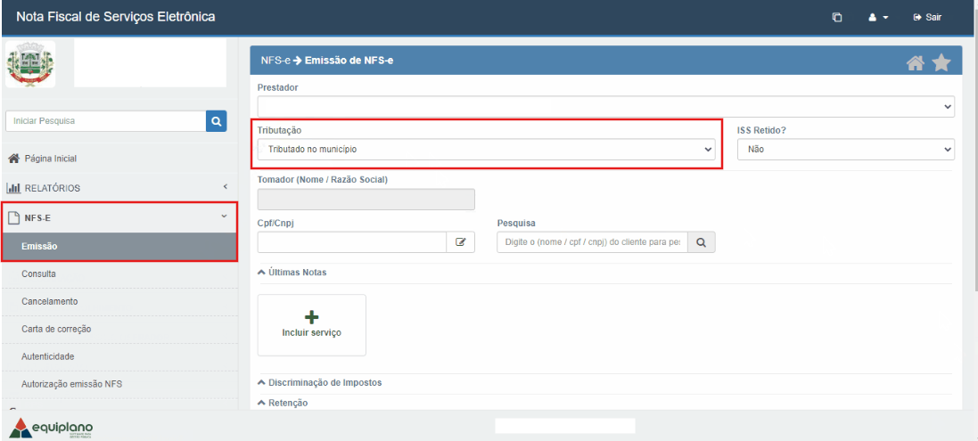 Este campo indica quem é o responsável pelo recolhimento do ISS (Imposto Sobre Serviços). Essa informação pode ser encontrada na sua última nota fiscal emitida ou gere um rascunho de NFS-e pelo portal da prefeitura em NFS-e > Emissão de NFS-e, e você encontra a Natureza da operação no campo Tributação.