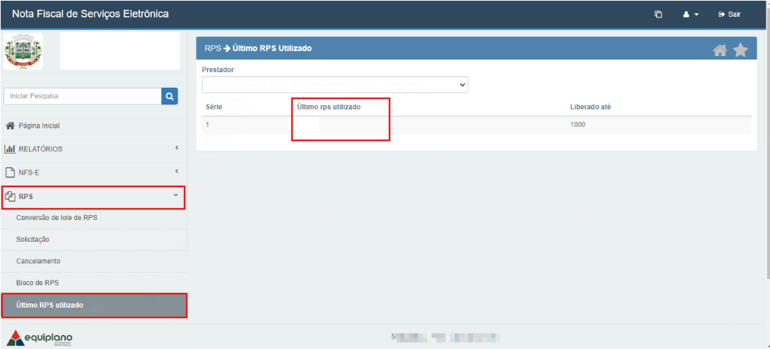 Você encontra também o número de RPS no portal da prefeitura, após realizar o login em RPS > Último RPS Utilizado.