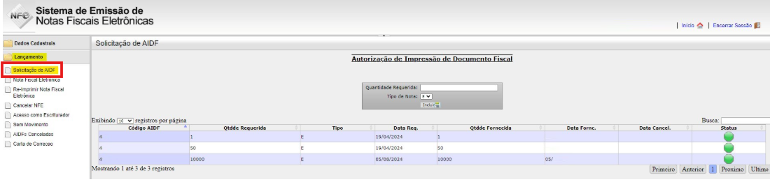 Após realizar o login no portal da prefeitura acesse Lançamento > Solicitação de AIDF.