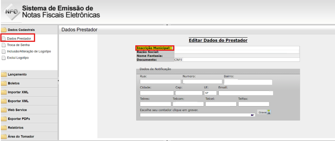 Dentro do portal da prefeitura, após realizar o login, você encontra essa informação em Dados cadastrais > Dados prestador.