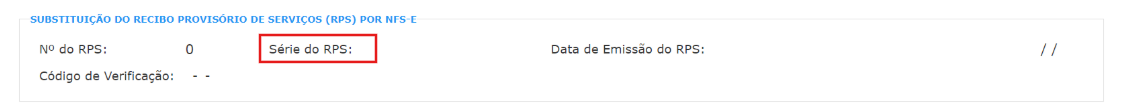 O Número de Série do RPS pode variar de acordo com cada município e se trata de um controle interno da prefeitura para identificar as NFS-e emitidas. Pode ser um número (como 1,2 ou 3), ou letras (como S, SN, NFS).