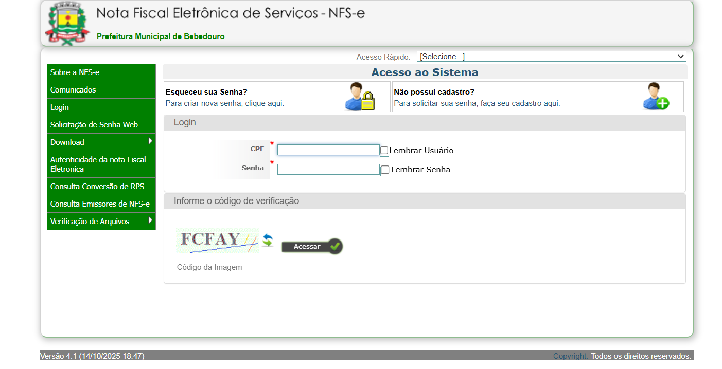 Para efetivar a comunicação da vobi com a prefeitura da sua cidade e assim, emitir sua nota fiscal através da vobi, é necessário preencher os campos Usuário, Senha.