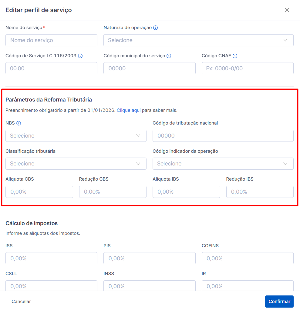 Os dados preenchidos no perfil do serviço serão utilizados para a emissão da NFS-e ao selecionar esse serviço.