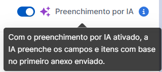 Para a criação de solicitações, ordens de compras e até mesmo cotações, você pode ativar o botão Preenchimento por IA!