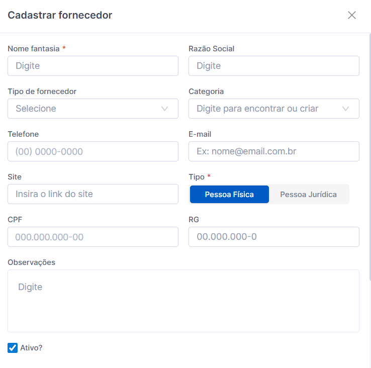 Você não precisa ter todos os dados para realizar o cadastro de um novo cliente ou de um fornecedor. Você poderá alterá-los ou adicionar novas informações mesmo depois de já cadastrado.