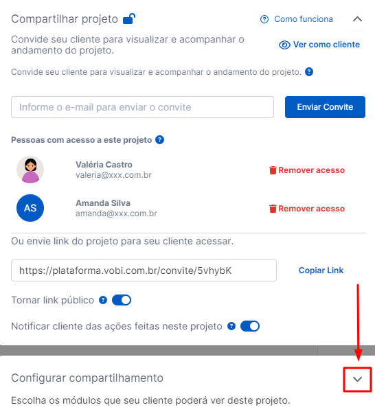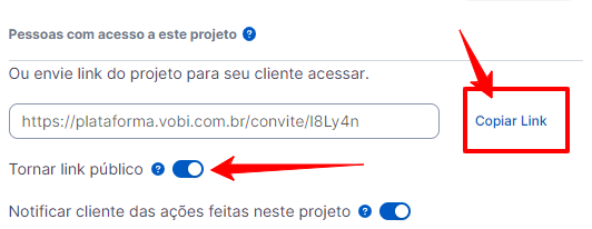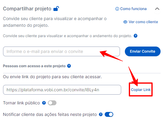 por link privado = seu cliente poderá interagir com o projeto e para isso, deverá criar um acesso o com login através desse link.