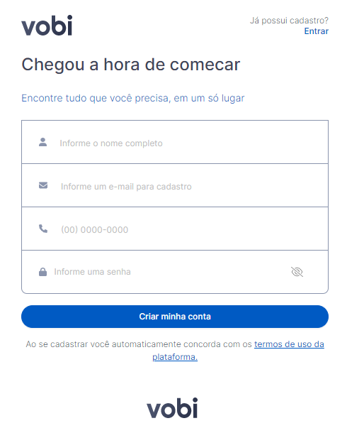 O link privado irá redirecionar o cliente para preencher seu cadastro e logo, ter acesso completo a plataforma.