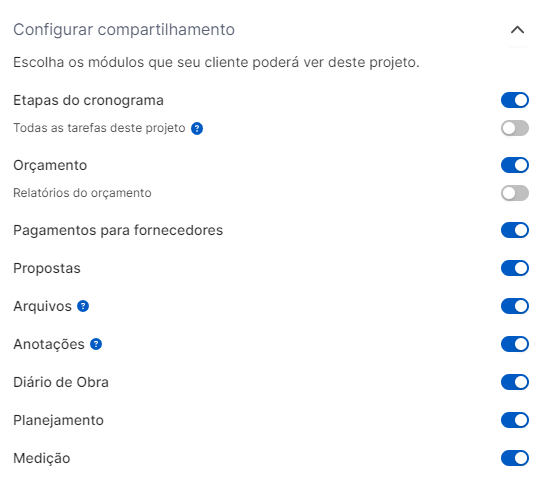 4. Na segunda janela, defina o que você deseja compartilhar com o seu cliente em