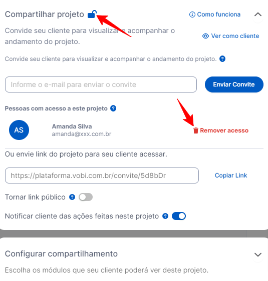 Pronto! Seu cliente já não possuirá mais acesso a esse projeto.