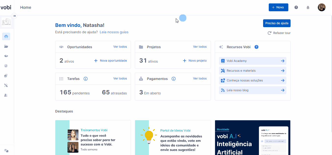 Clique no menu Projetos que fica no canto esquerdo da sua tela.