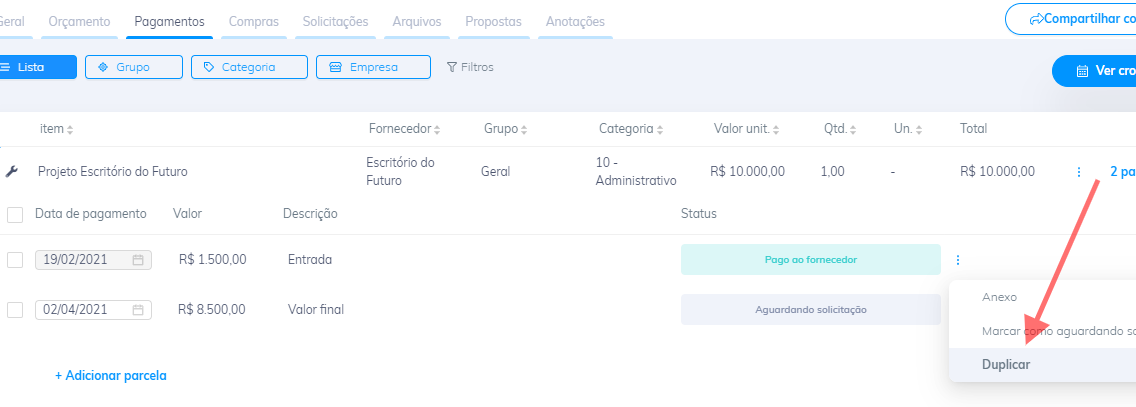 Chega de ficar criando a mesma parcela várias vezes, agora é só criar uma parcela e duplicar para crias as outras.