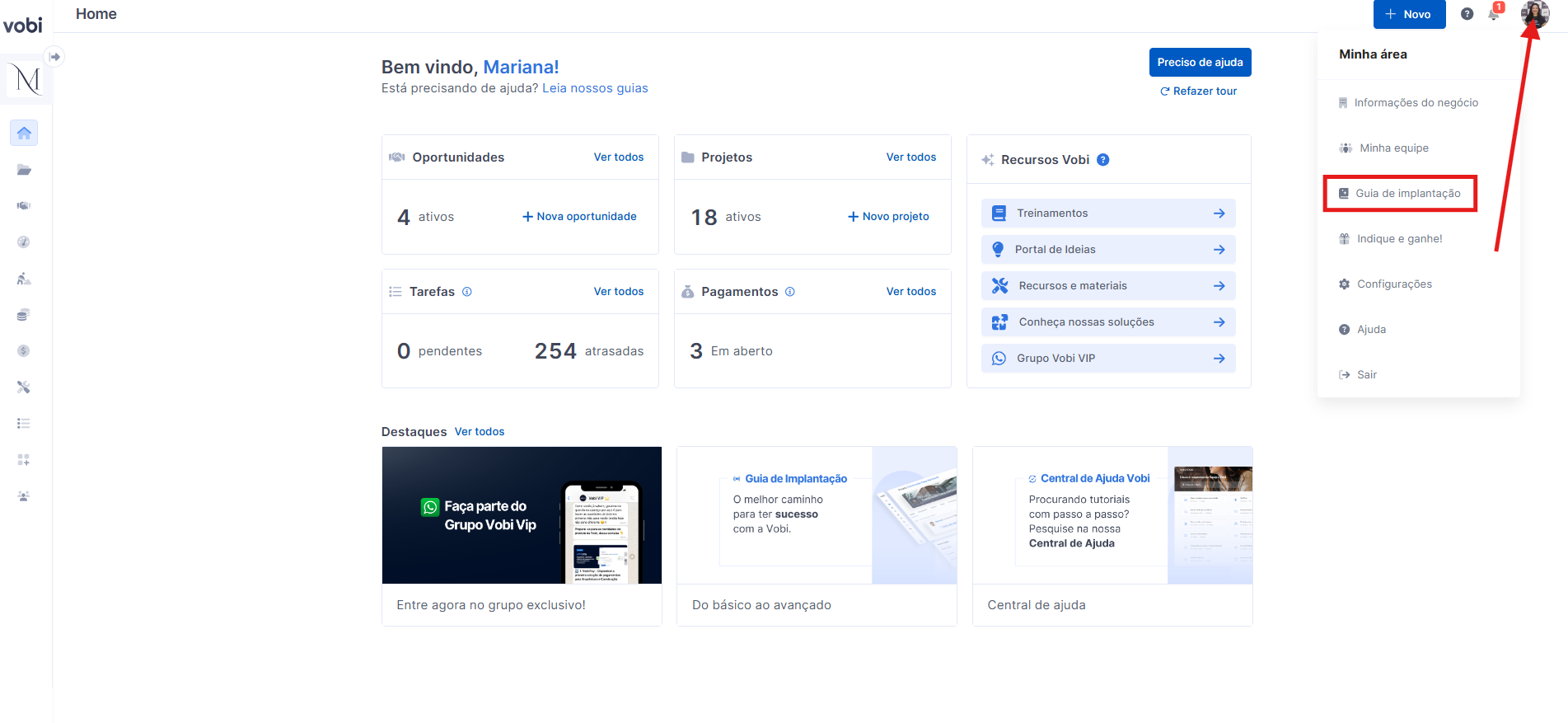 O Guia de Implantação da Vobi é personalizado conforme o plano ou ferramentas escolhidas pela sua empresa. As etapas e tarefas estarão dispostas de maneira clara, evitando qualquer confusão durante a implementação.