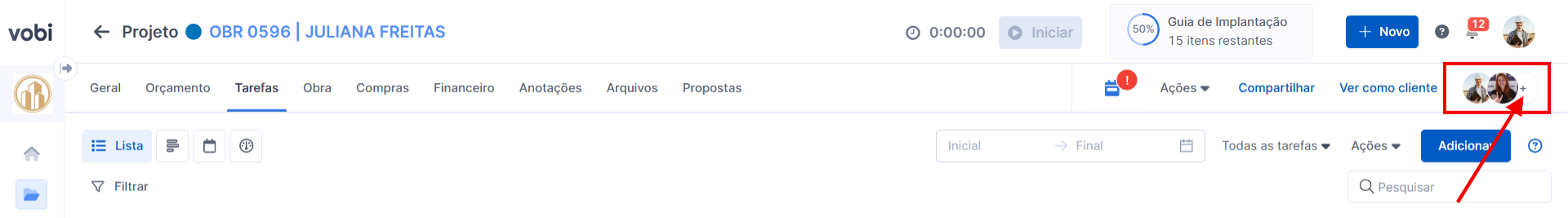 Siga o passo-a-passo abaixo para vincular colaboradores responsáveis em determinadas tarefas a partir do projeto.