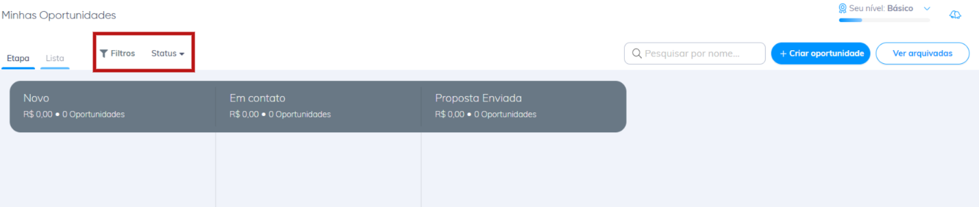 Melhoria na visualização de filtros dentro de Clientes/Fornecedores, Projetos e Oportunidades: facilitamos a visualização de projetos que você pode ter vinculado ao status "finalizado". Antes essa ferramenta estava mais escondida dentro dessas funcionalidades. Agora você pode encontrar aqui: