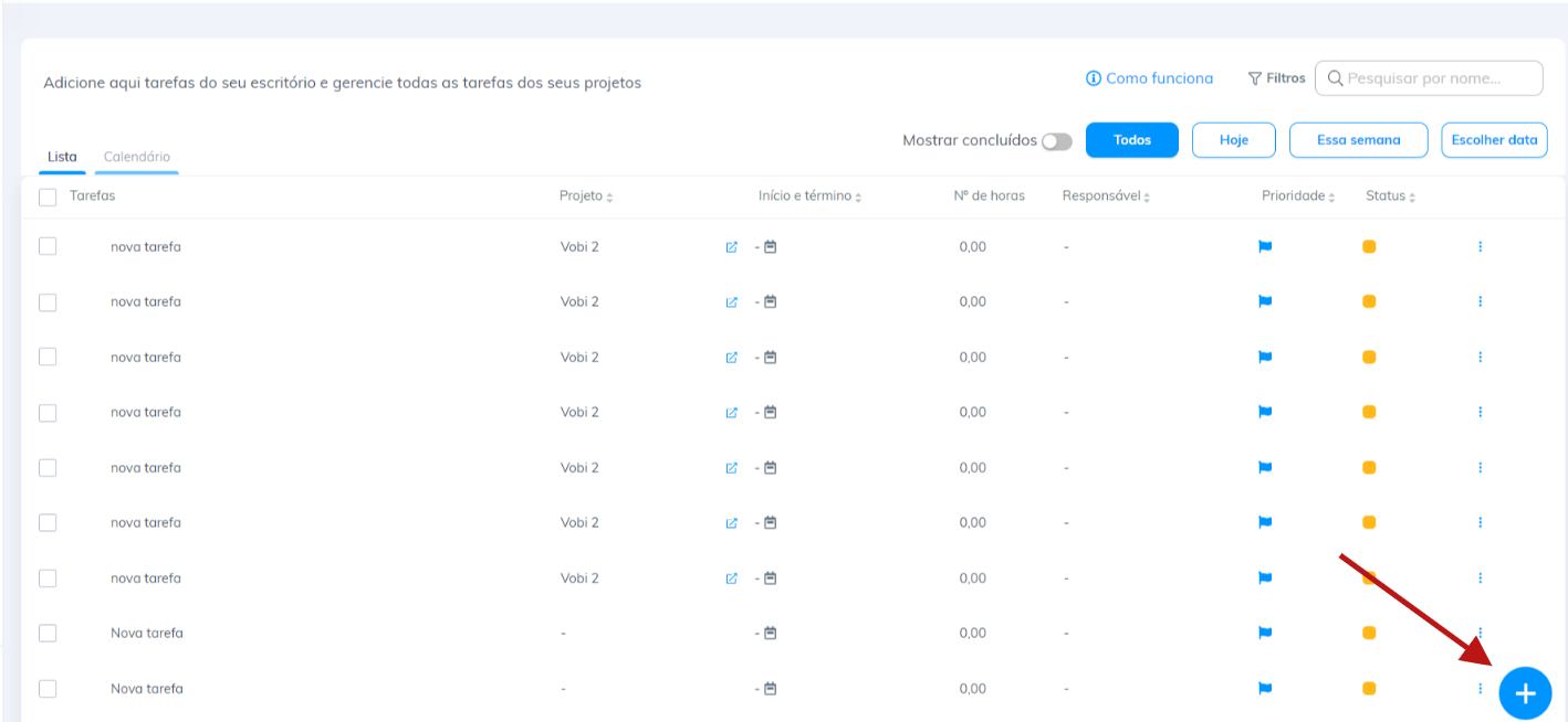 Um novo botão para adicionar novas tarefas que é perfeito para você que possui muitas tarefas dentro da lista de afazeres da sua empresa. Entre no menu Gestão de tarefas e então clique no seguinte ícone para criar uma nova tarefa: