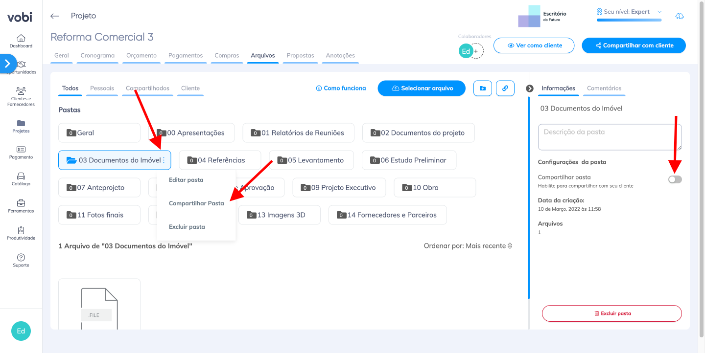 Quer conferir se está tudo certinho do lado do seu cliente ou simplesmente tem curiosidade pra ver como seu cliente visualiza a plataforma? Agora isso é possível! basta acessar seu projeto e clicar na opção "Ver como cliente".
