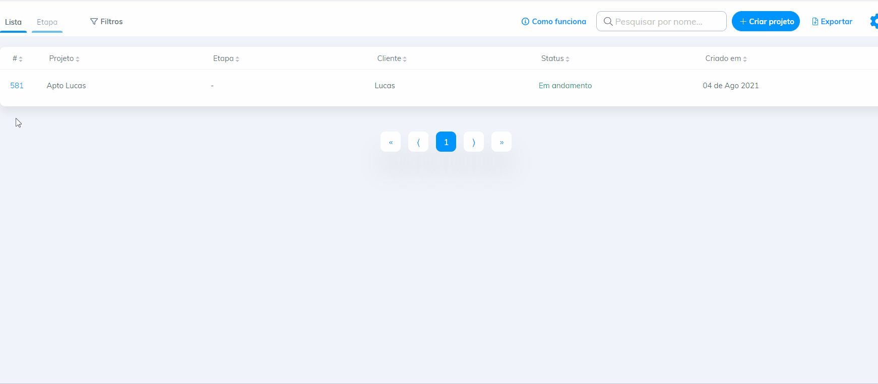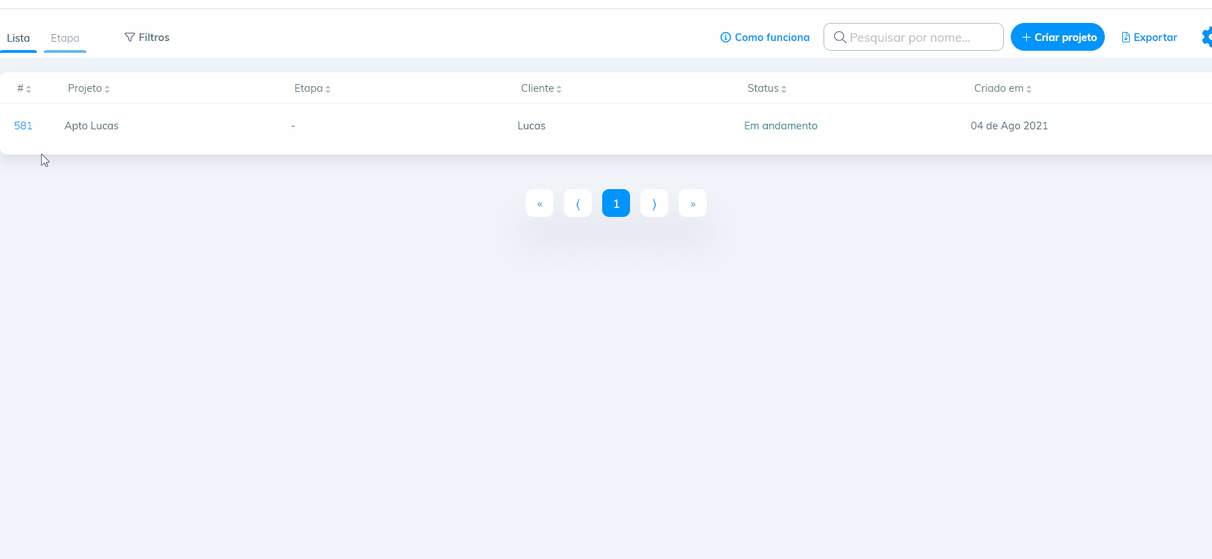 Visualização de projetos como cliente