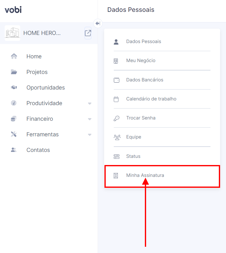 2. Selecione a opção Minha Assinatura para acessar a página de Assinatura Geral.