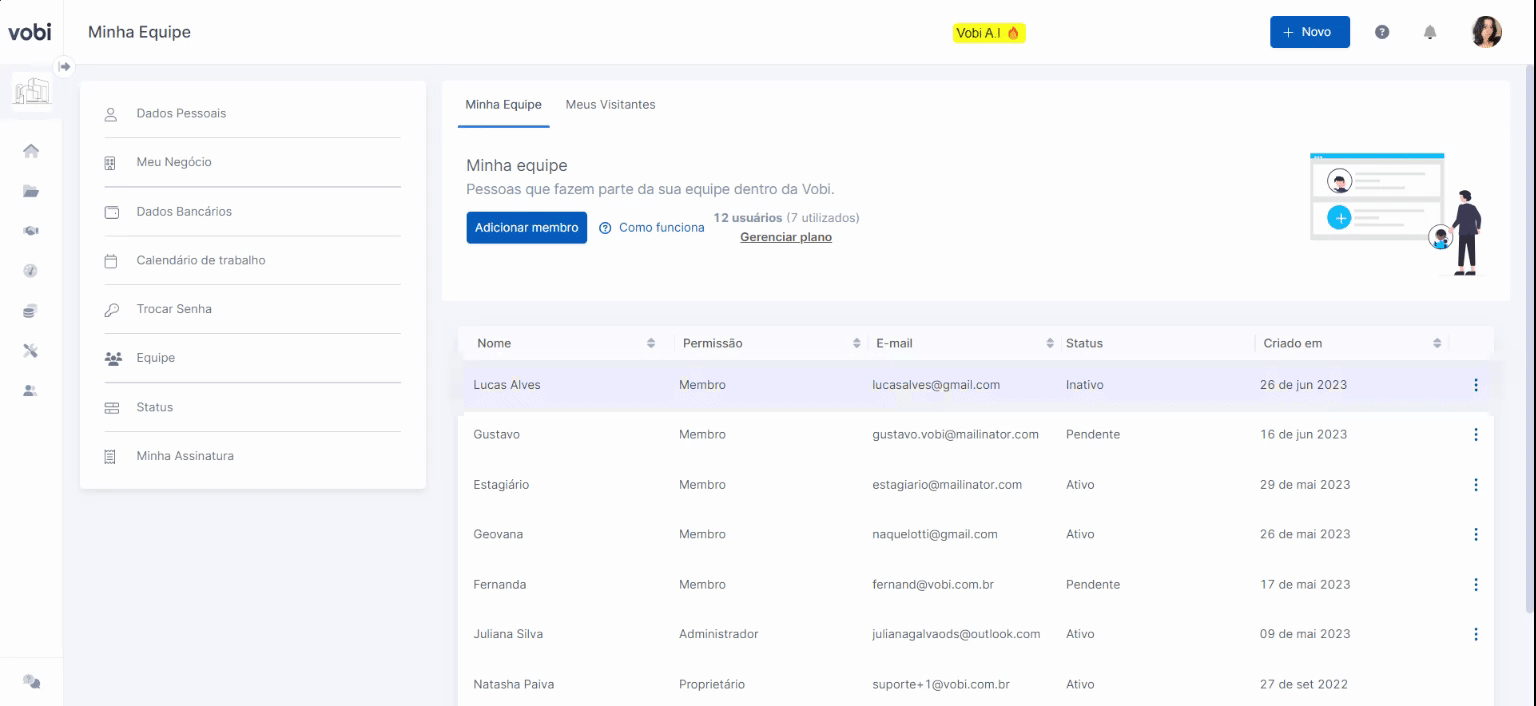 Esse processo deverá ser feito com cada membro adicionado na Equipe.