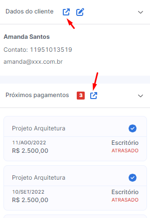 Lembre-se de configurar corretamente as permissões do seu cliente - as informações de próximas tarefas/pagamentos só aparecerão se você permitir que apareçam.