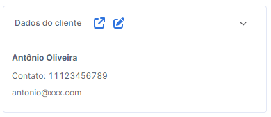 Esse campo contém as informações principais, que foram preenchidas no cadastro do cliente, como: nome completo, e-mail e telefone.