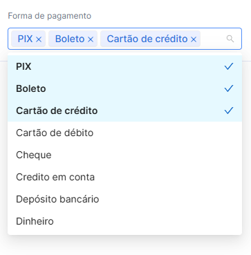 Formas de pagamento: insira as opções de pagamento aceitável para essa despesa.