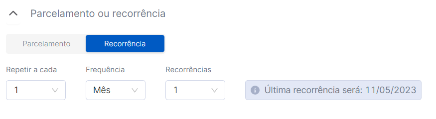 Recorrência: quantas vezes essa despesa ou receita irá acontecer novamente.
