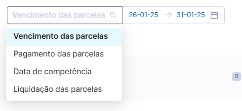 Primeiro defina o filtro de data se será pelo vencimento, pagamento, liquidação da parcela ou data de competência da despesa e depois aplique o intervalo de datas que deseja analisar!