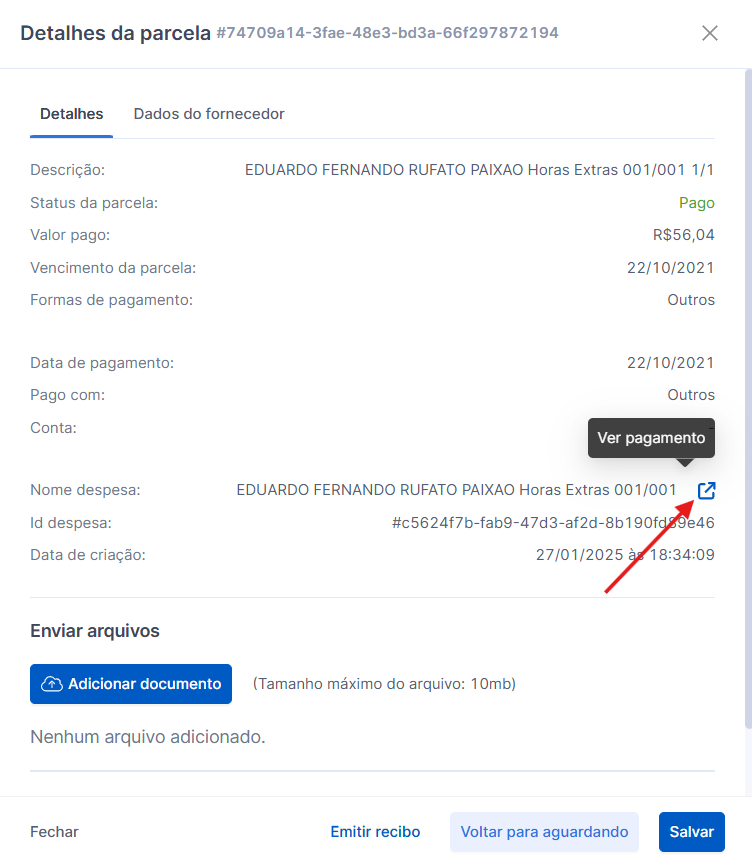 E ao abrir uma parcela você pode abrir as demais informações da despesa na opção Ver detalhes!