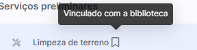 Dica da vobi! Identificar se uma composição pertence à SINAPI ou a sua biblioteca é fácil. Se a composição estiver no seu orçamento e exibir um ícone de bandeira ao lado, basta passar o mouse sobre esse ícone. Se a composição estiver vinculada à base de dados da SINAPI, você verá a mensagem "SINAPI". Caso contrário, se for um item cadastrado na sua biblioteca da plataforma, você verá "Vinculado à biblioteca".
