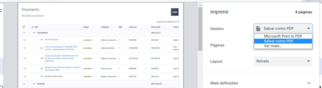 Exportação de PDF com muito mais qualidadeAgora a exportação do seu PDF conta com muito mais qualidade! Além disso, ao exportar orçamentos que possuam itens com link, o nome ficará em azul e será clicável!