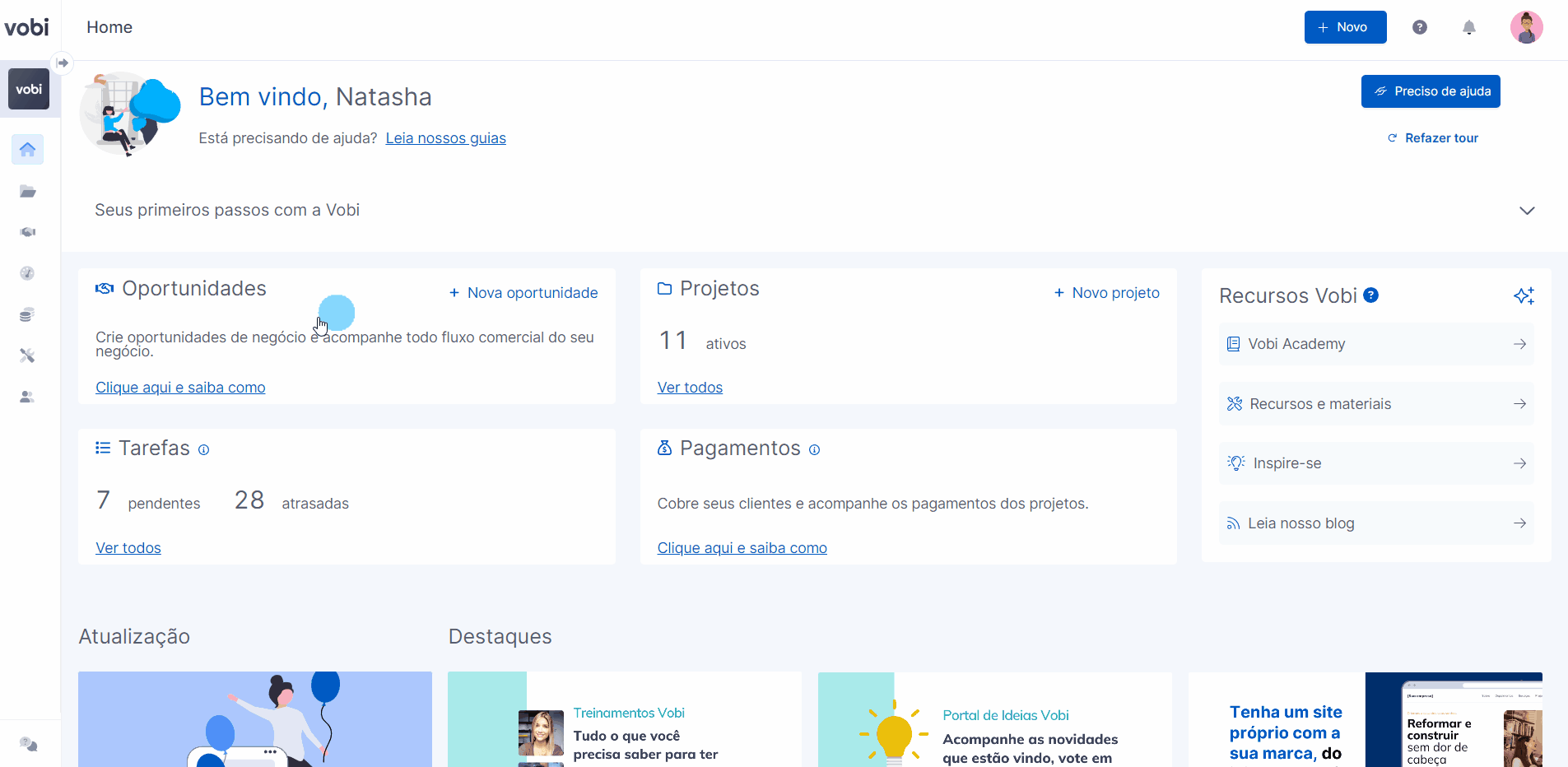 [Formulários muito mais simples para economizar seu tempo]: agora ao criar um novo item (produto, serviço ou composição) na sua biblioteca ou até mesmo um novo contato (cliente ou fornecedor), uma janela vai ser aberta no canto direito da sua tela para fazer esse novo registro, sem precisar que você mude de página!