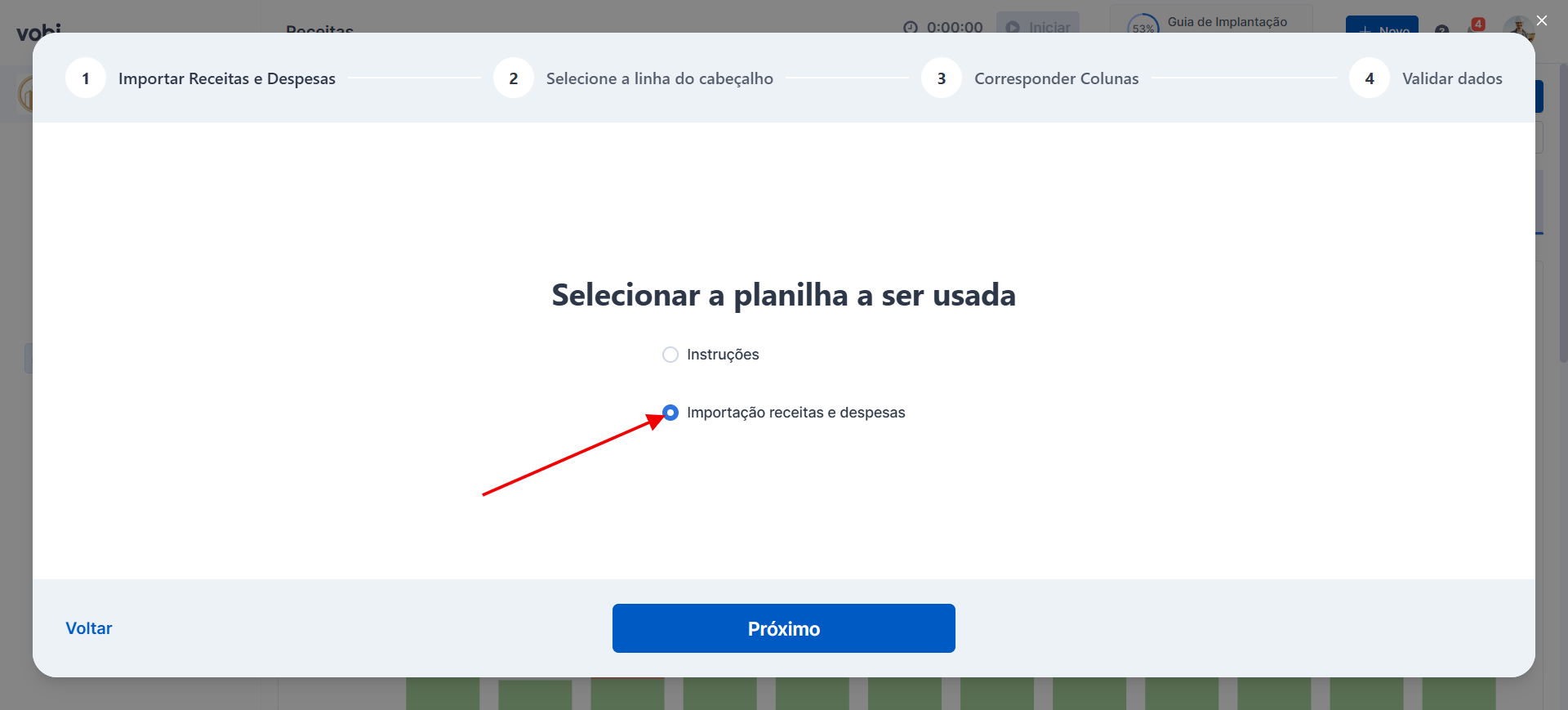 Assim que o arquivo for carregado, você deve selecionar qual aba está a planilha que deseja importar e clicar em Próximo.