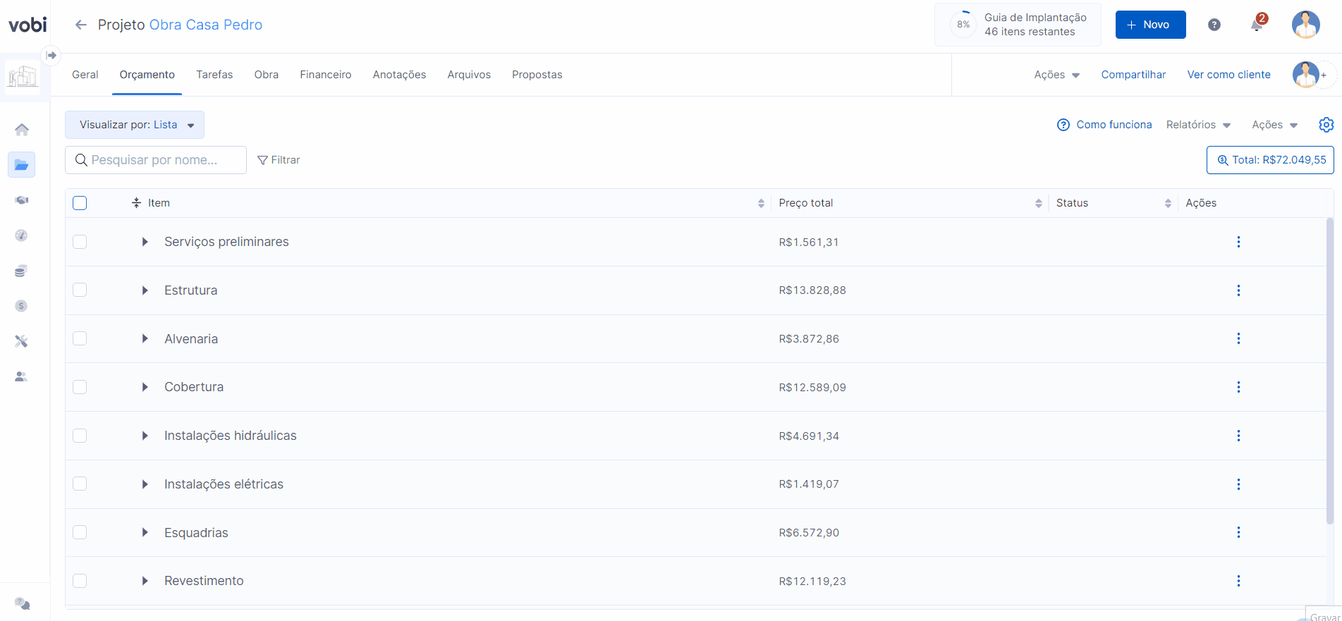 Na nova atualização da Vobi, você terá mais facilidade ao alterar os itens do seu orçamento e muito mais!