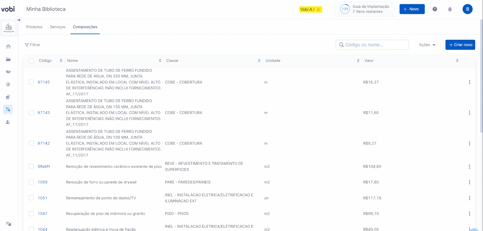 Tenha mais praticidade e agilidade na manutenção nos itens da sua biblioteca e economize ainda mais tempo ao criar os seus orçamentos.
