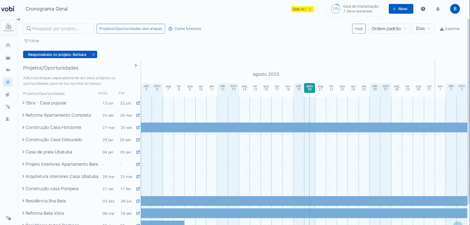 Agora, você terá dois filtros no cronograma geral de projetos e obras para melhor acompanhar as responsabilidades do seu time.